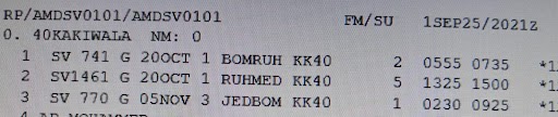 20-Oct | SV1461 | RUH → MED | 13:25 | 15:00 | Connection | ||
