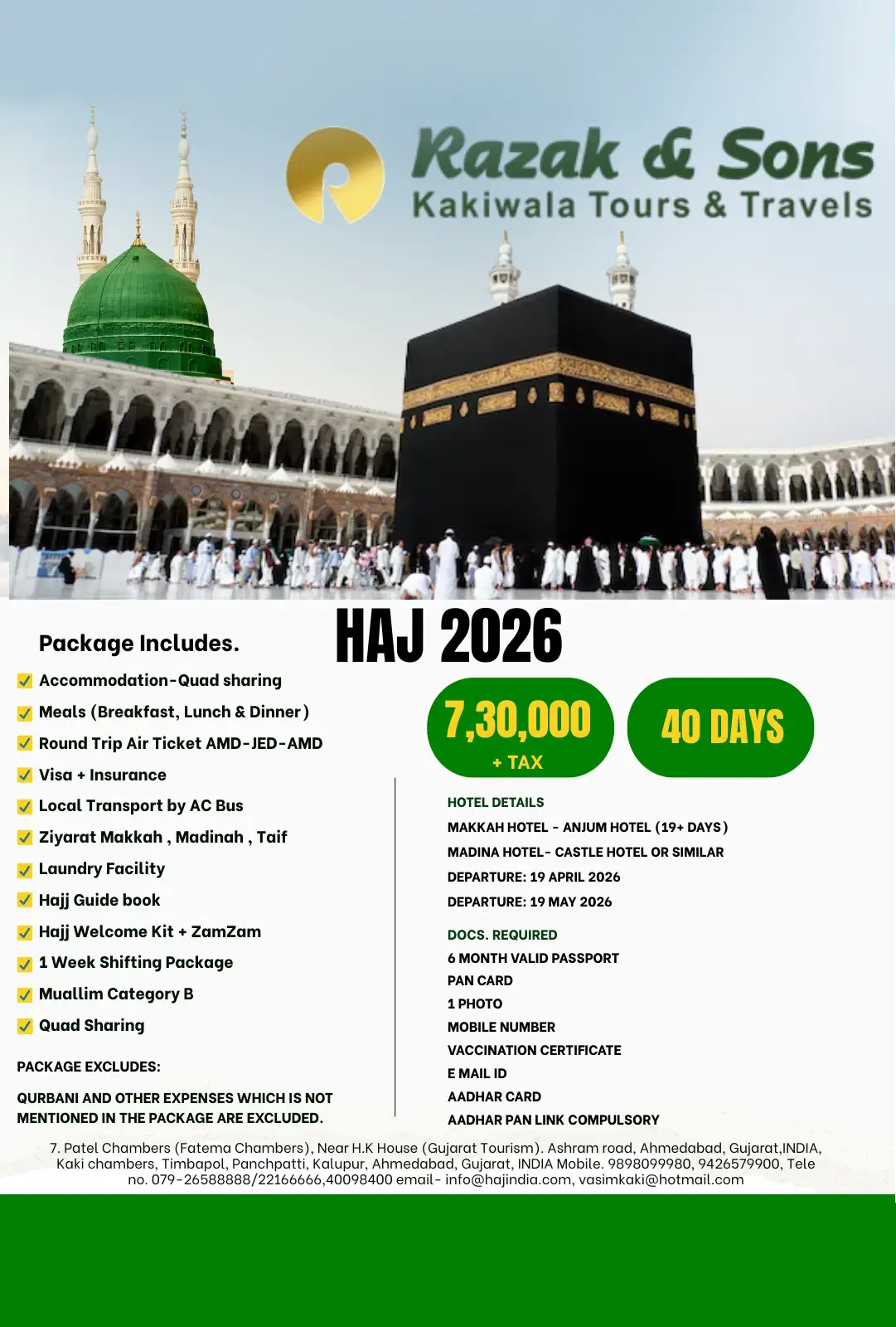 Kakiwala Tours & Travels was founded by its legendary founder Mr. Abdul Razak Abdul Kader Kakiwala in 1969. He had rock solid backing and moral support of his wife Late Mrs. Jamila Khatoon (May their souls rest in peace). During their tenure ship & stewardship, it was our domestic travel wing that took first tour to holy shrine of Ajmer Sharif.